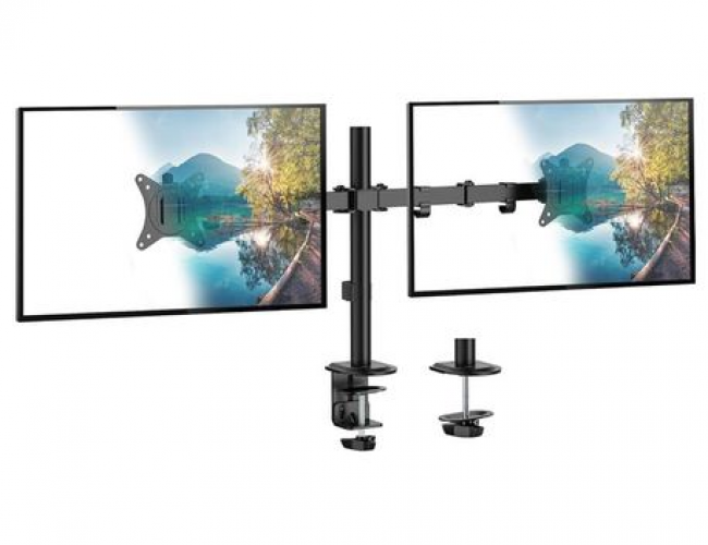 -This mount allows you to position and secure two monitors side by side, providing an expansive and efficient workspace. Designed to fit monitors between 15 and 30 inches, it accommodates a wide range of monitor sizes and models.